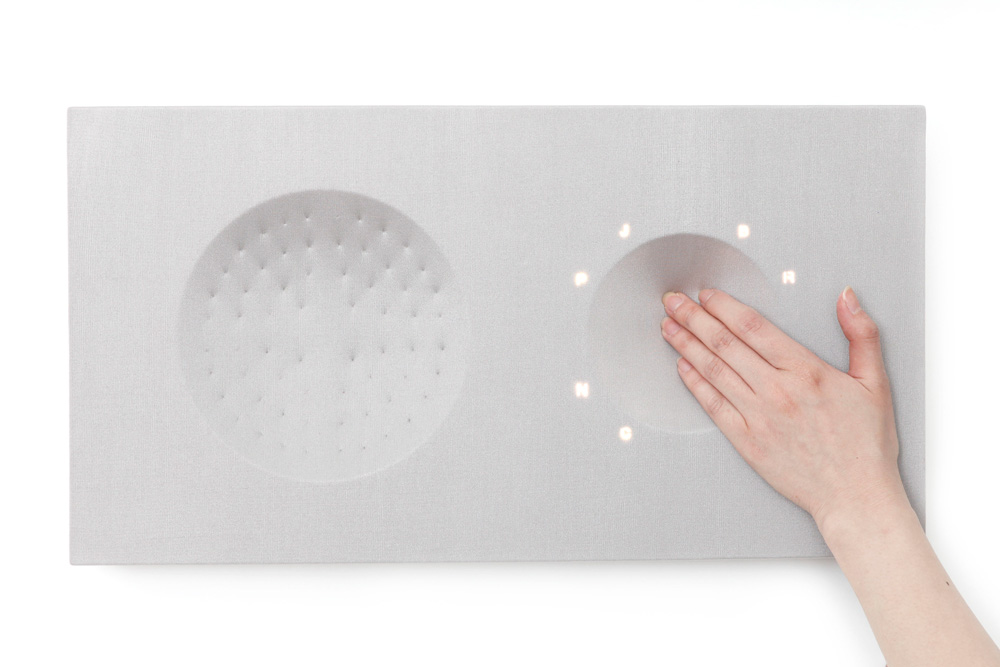 RCA graduate Eunhee Jo has created a sound system with an embedded tactile interactive surface, which responds to touch. By pushing the concave fabric control panel the user can skip tracks, adjust the volume or adapt the equaliser.